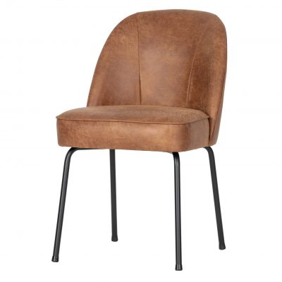 Compacte luxe diner stoel met stiksels en zwarte metalen poten. Afm: zithoogte 47cm x breedte 57cm x hoogte rugleuning 80cm