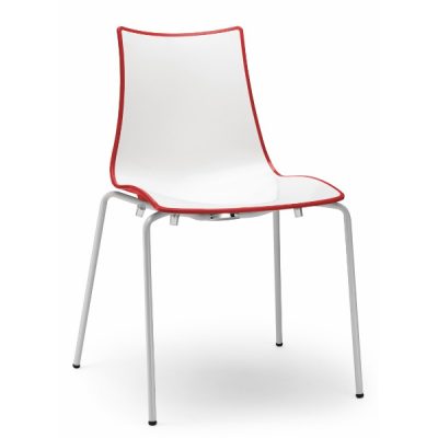 . De stoel heeft een slank metalen onderstel in een zwarte kleur.