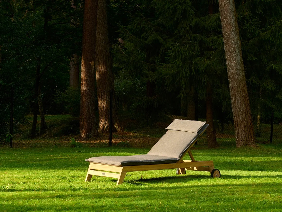 Dankzij de warme kleur en de levendige houtnerf past de Luna lounger harmonieus in de natuurlijke omgeving in de tuin of op het terras. De bijpassende kussens zijn verkrijgbaar in verschillende stoffen in diverse kleuren variƫrend van ingetogen natuurlijke kleuren zoals beige en taupe tot fris blauwe tinten. Er zijn voor de Lounger 3 modellen kussens beschikbaar: Design, Michelin en Elegant.