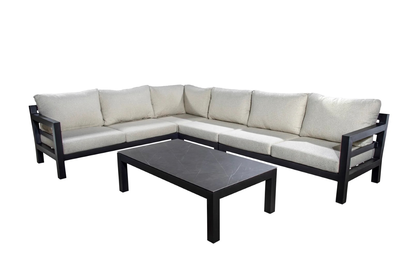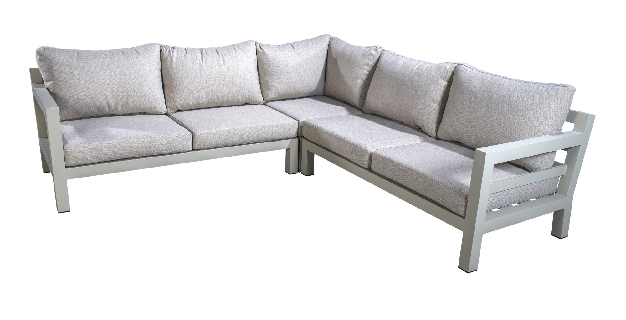 De Yoi Hoekbank Midori heeft een mooi strak aluminium frame, wat is voorzien van een mooie coating. Deze zorgt niet alleen voor een mooie uitstraling van de tuinbank, maar geeft ook een stukje extra bescherming. Aluminium heeft een aantal voordelen, het is onderhoudsvrij, licht van gewicht maar toch sterk en kan mooi vormgegeven worden. Ideaal dus voor tuinmeubelen.