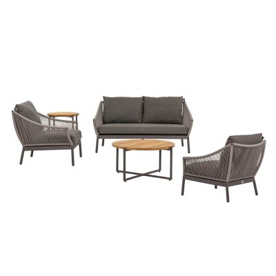 De royale Bijou 3 zits sofa met aluminium frame heeft stevig rope weaving in de kleur Ash grey en all weather Bee Wett kussens.