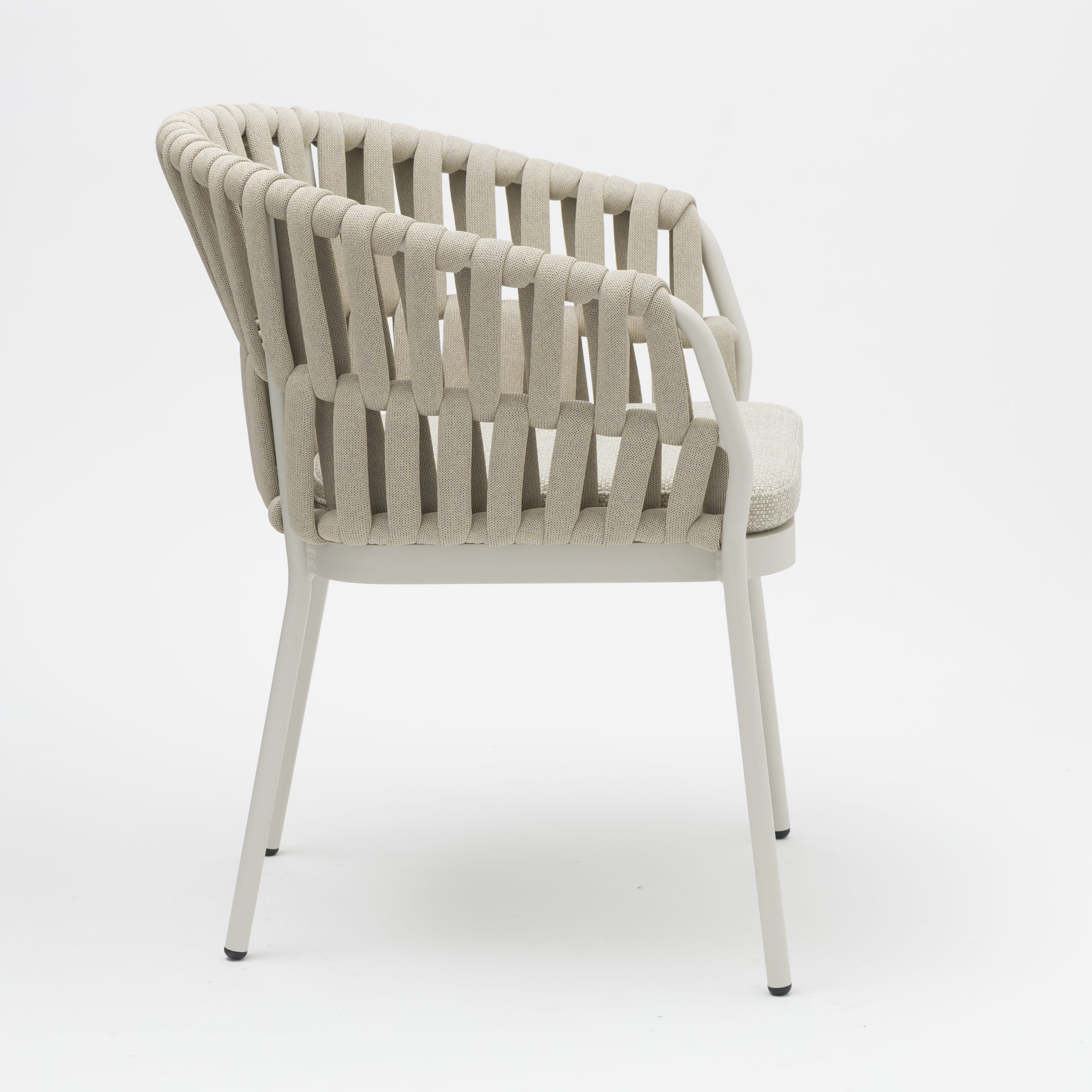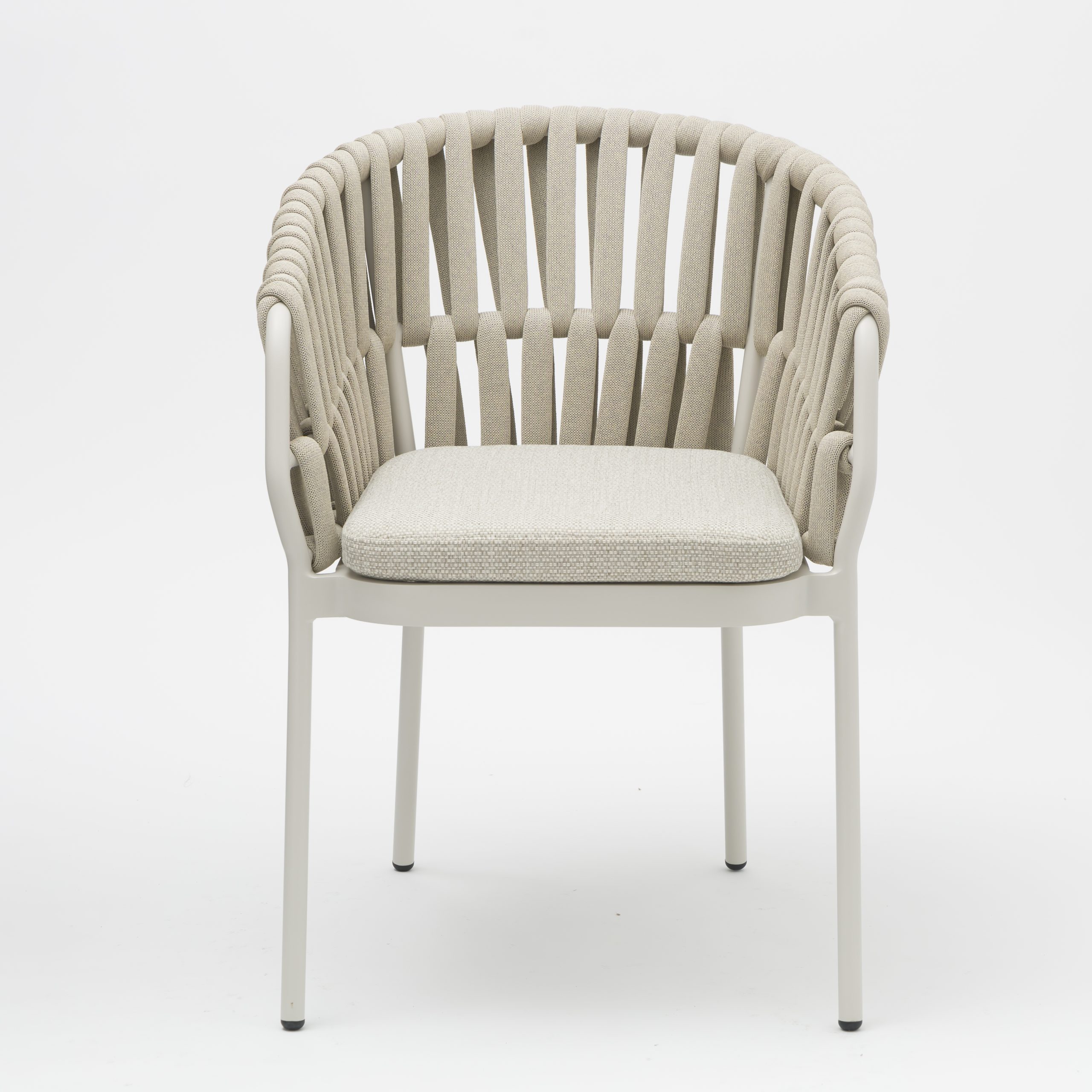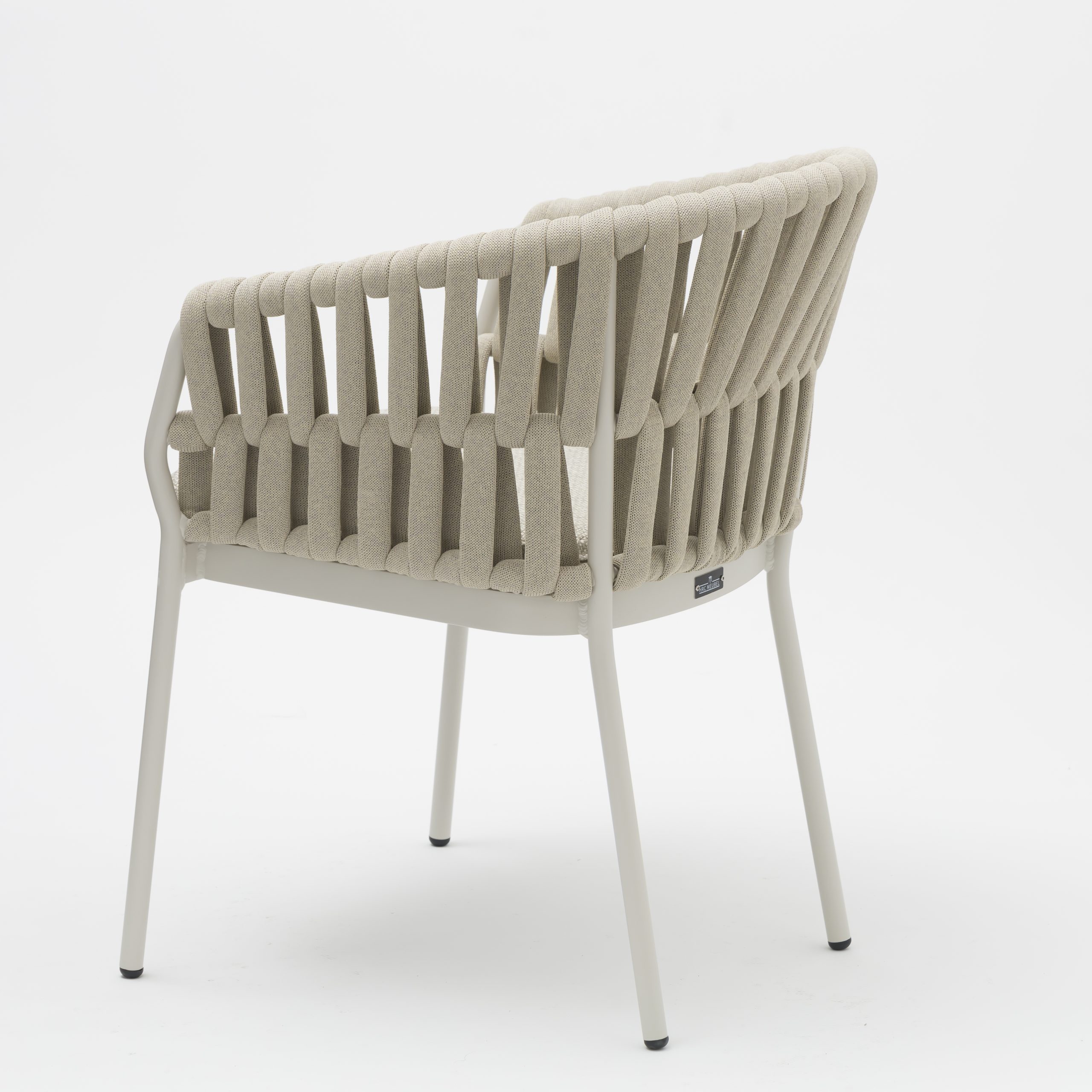 Onthoud de naam, want de DREAM dining chair met armleuningen van gepoedercoat aluminium en geworven zitting is een must have in uw tuin, overkapping of restaurant.