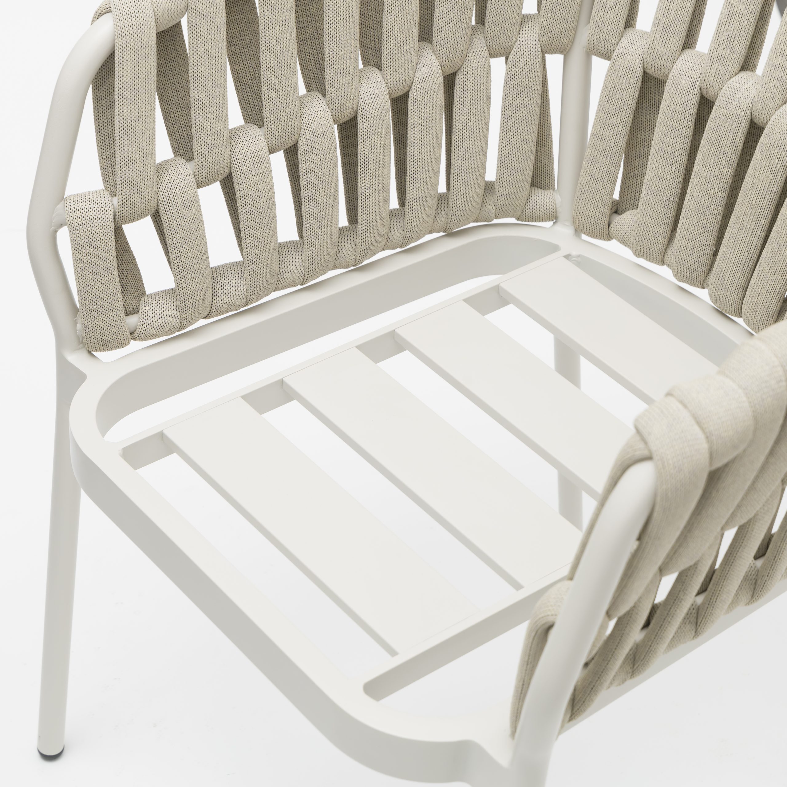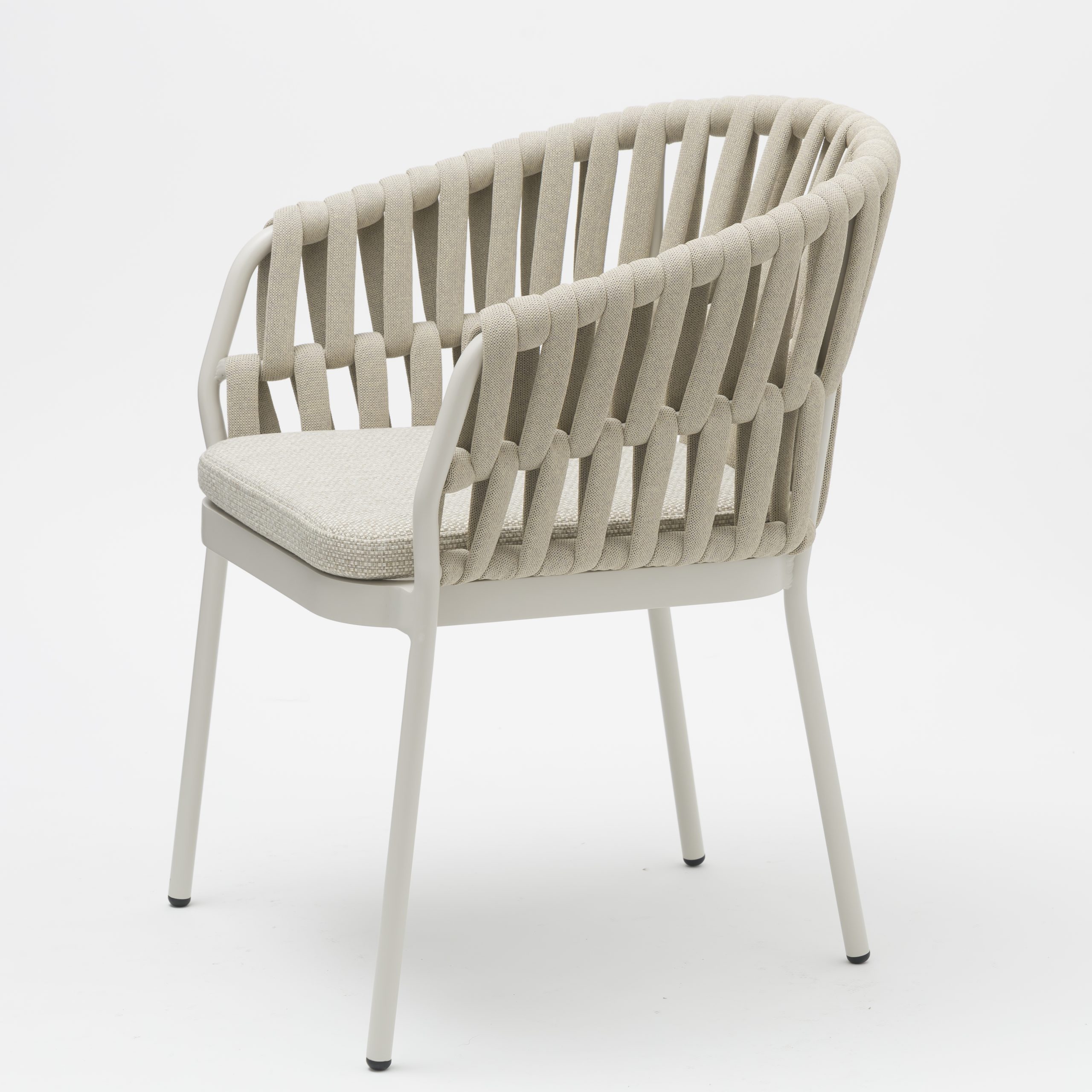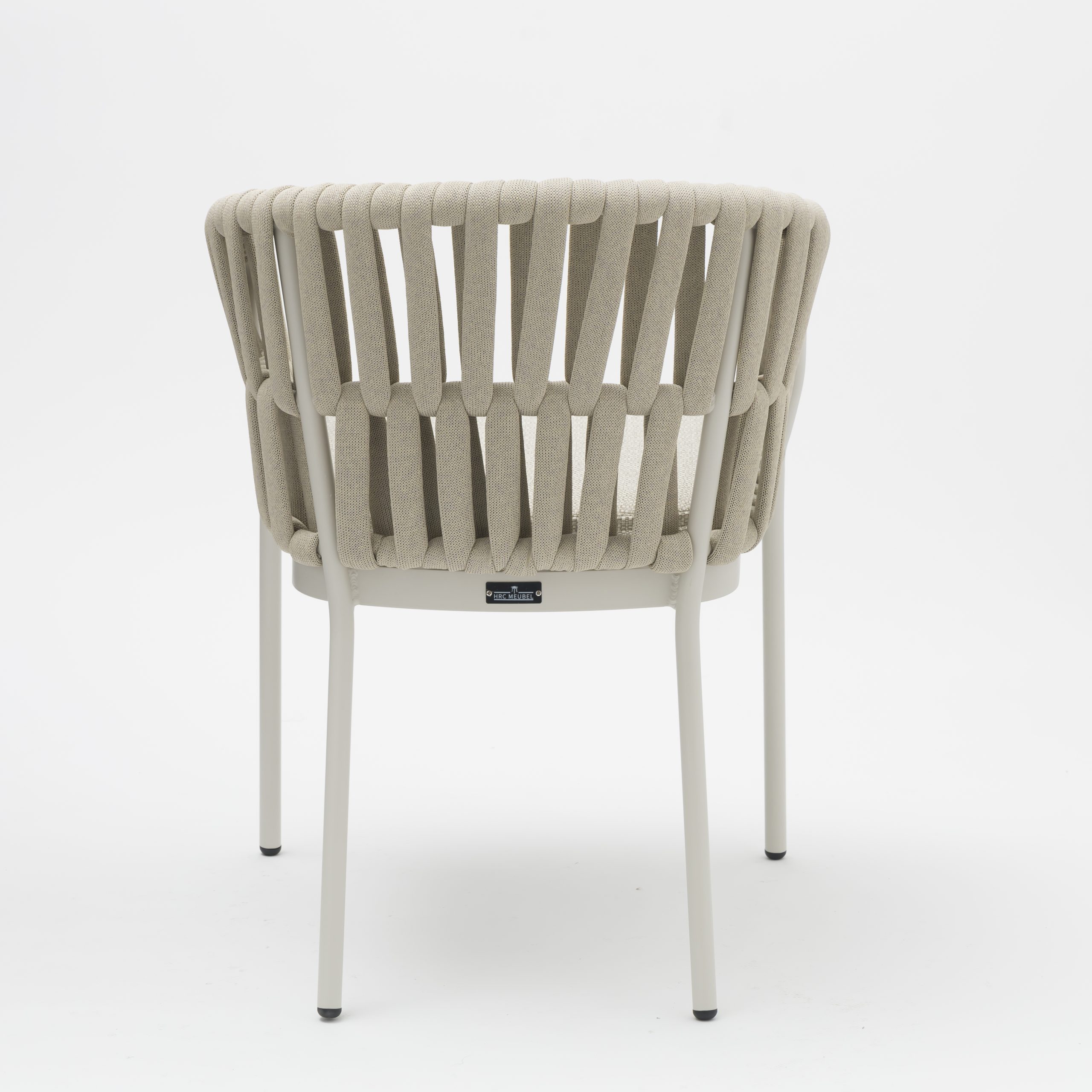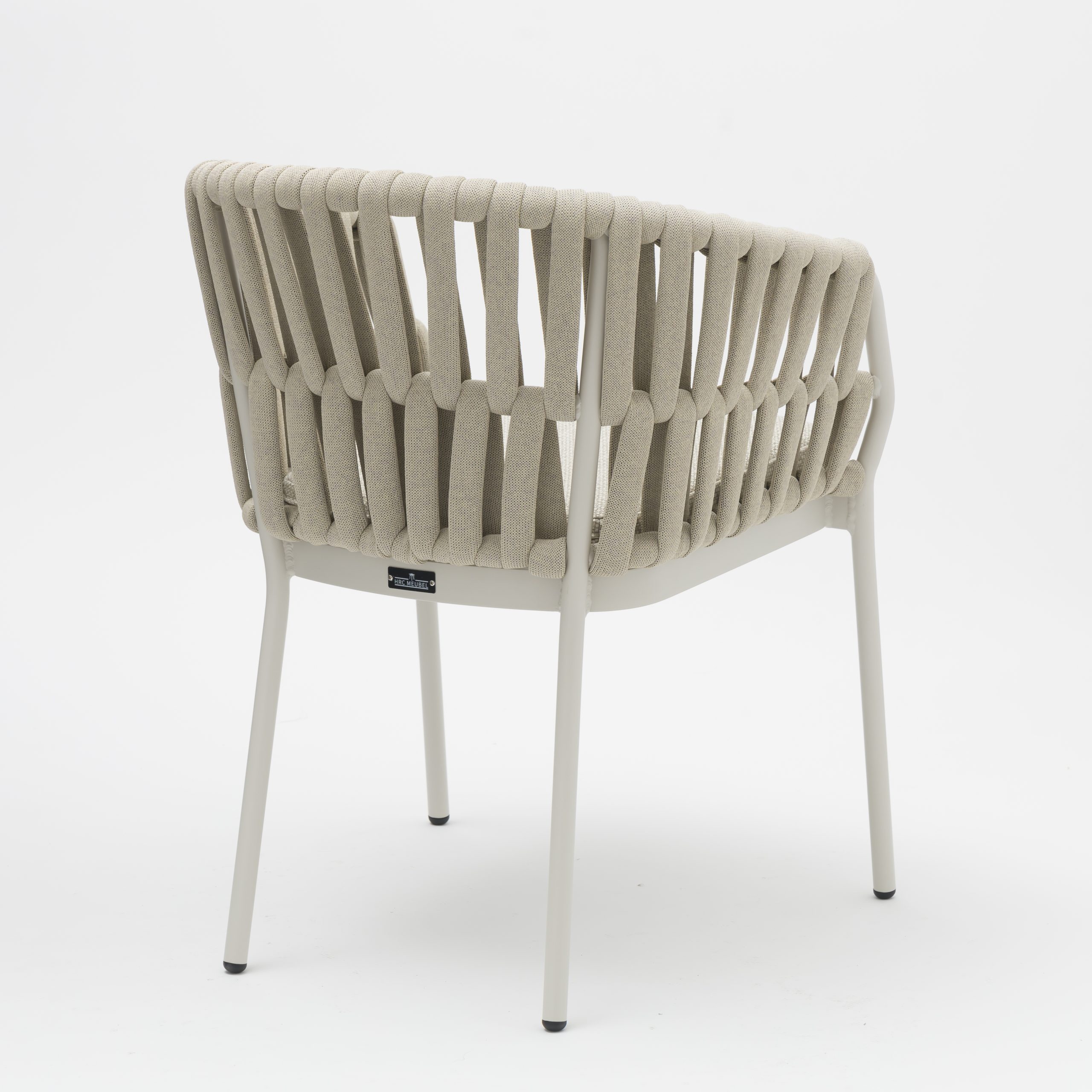 Onthoud de naam, want de DREAM dining chair met armleuningen van gepoedercoat aluminium en geworven zitting is een must have in uw tuin, overkapping of restaurant.
