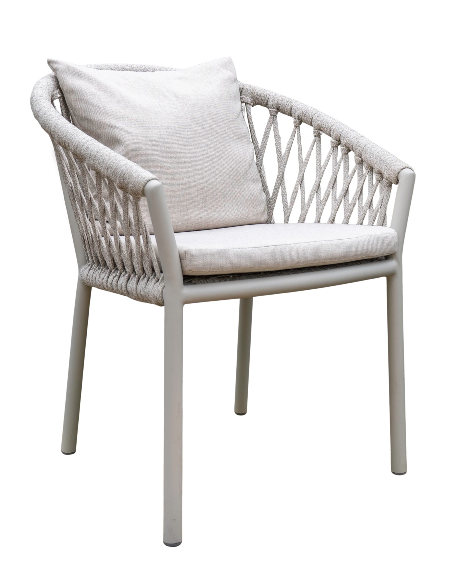 De Majinto stoel is een fraai vormgegeven en comfortabele stoel. De Majinto stoel heeft een aluminium frame, welke voorzien is van een brede belt. Deze is open gevlochten en is daarmee toch luchtig. Wanneer u voor de white-taupe belt kiest is het frame in de kleur Chalk, bij een donker grijze belt is het frame antraciet en kiest u een slate belt krijgt u een brons kleurig frame. In deze stoel is een zit- en rugkussen verkrijgbaar om het comfort te verhogen. Deze stoel bijzonder goed aan houten tafels.