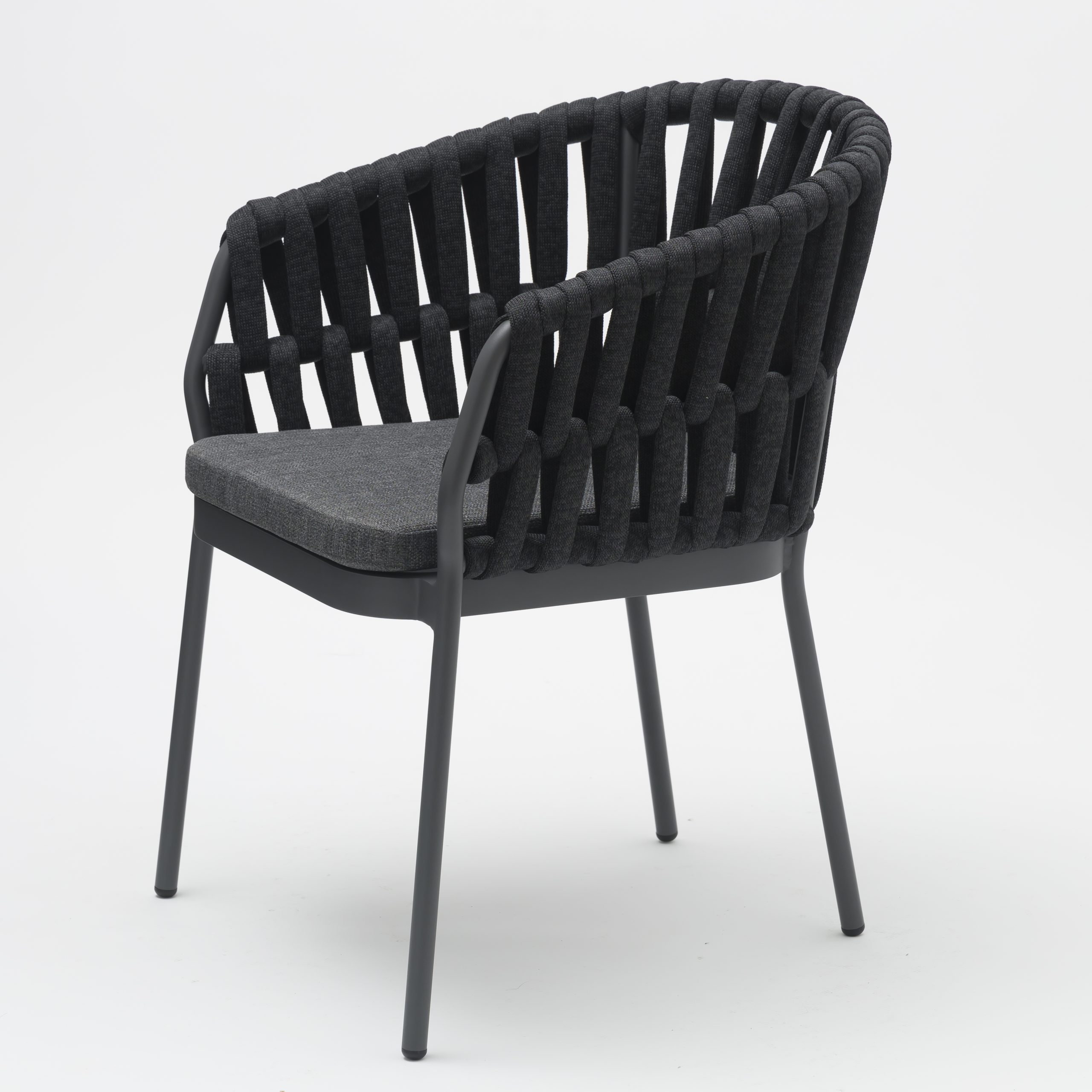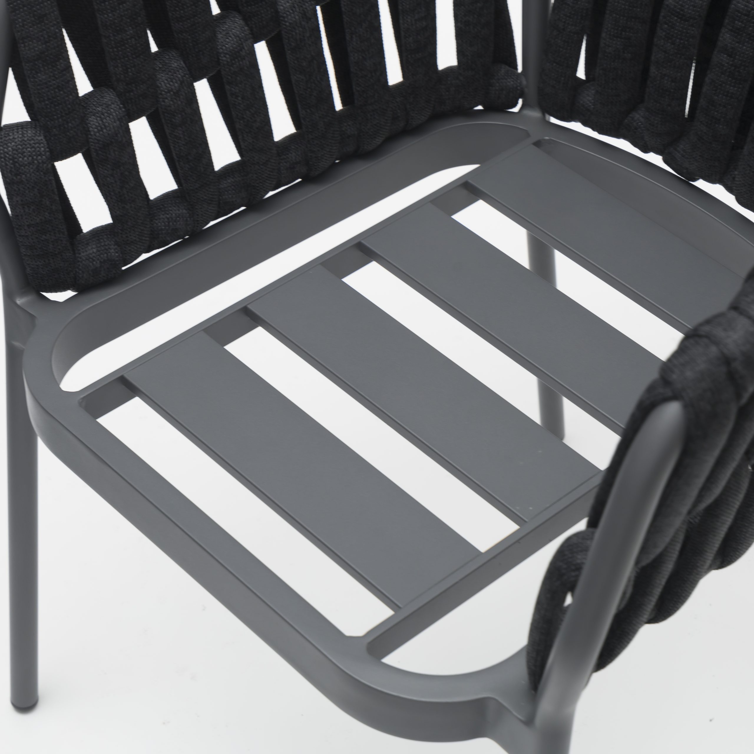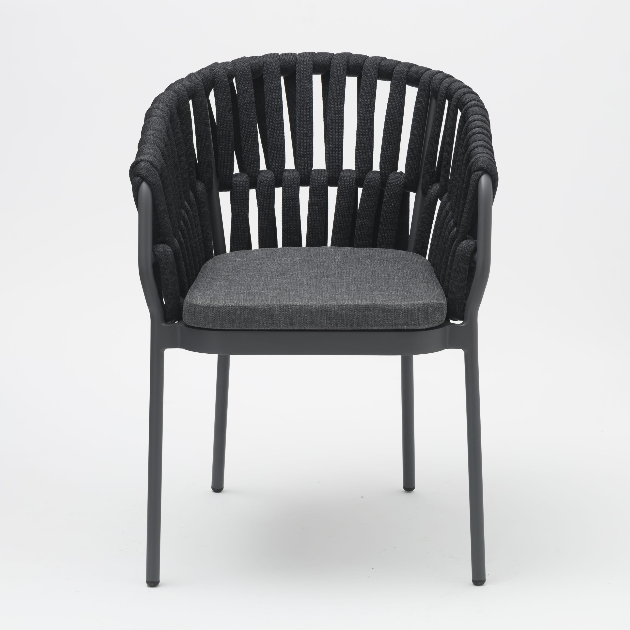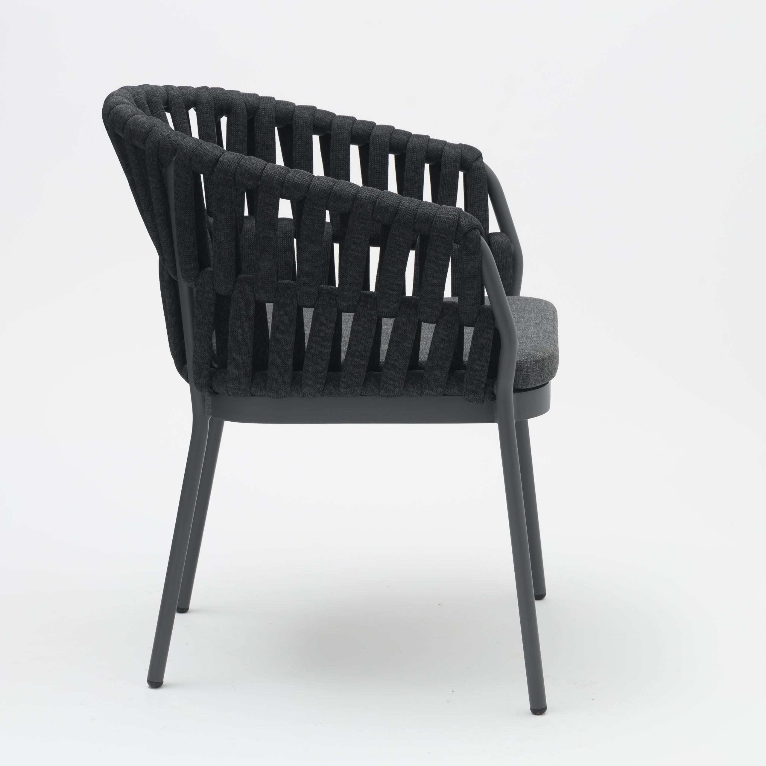 Onthoud de naam, want de NIGHT dining chair met armleuningen van gepoedercoat aluminium en geworven zitting is een must have in uw tuin, overkapping of restaurant.