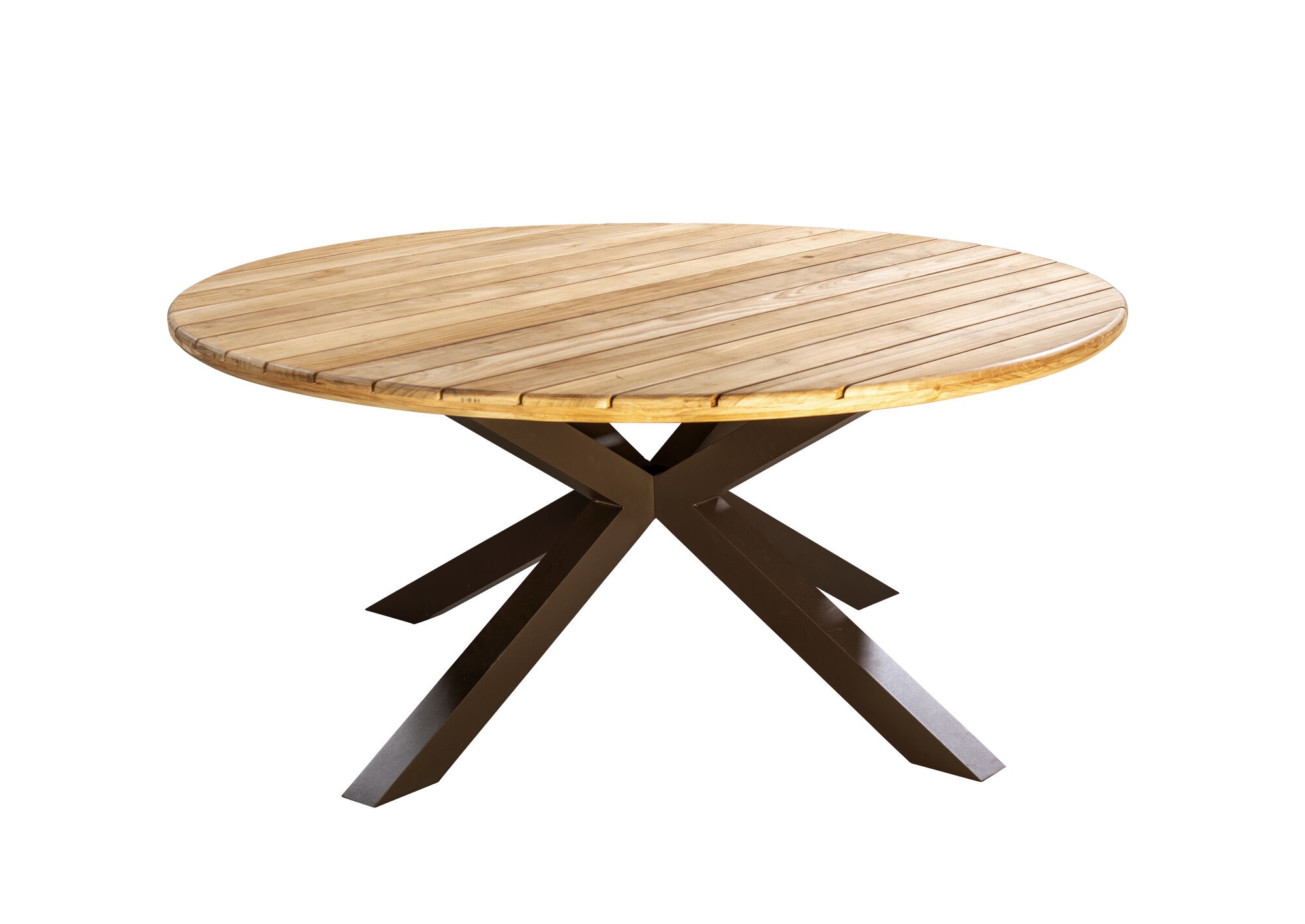 Zoek je een low dining table in een ronde vorm, neem dan deze parel serieus in overweging: Noas. Deze fantastische tafel heeft een blad van gecertificeerd teakhout met planken die tot aan de rand doorlopen en vakkundig zijn afgewerkt. Het blad steunt op een karakteristieke ‘spin’poot van aluminium in de kleur Salix of Bronze. Aan de ronde tafels met een diameter van 150 centimeter, kun je zeker met vier personen tafelen.